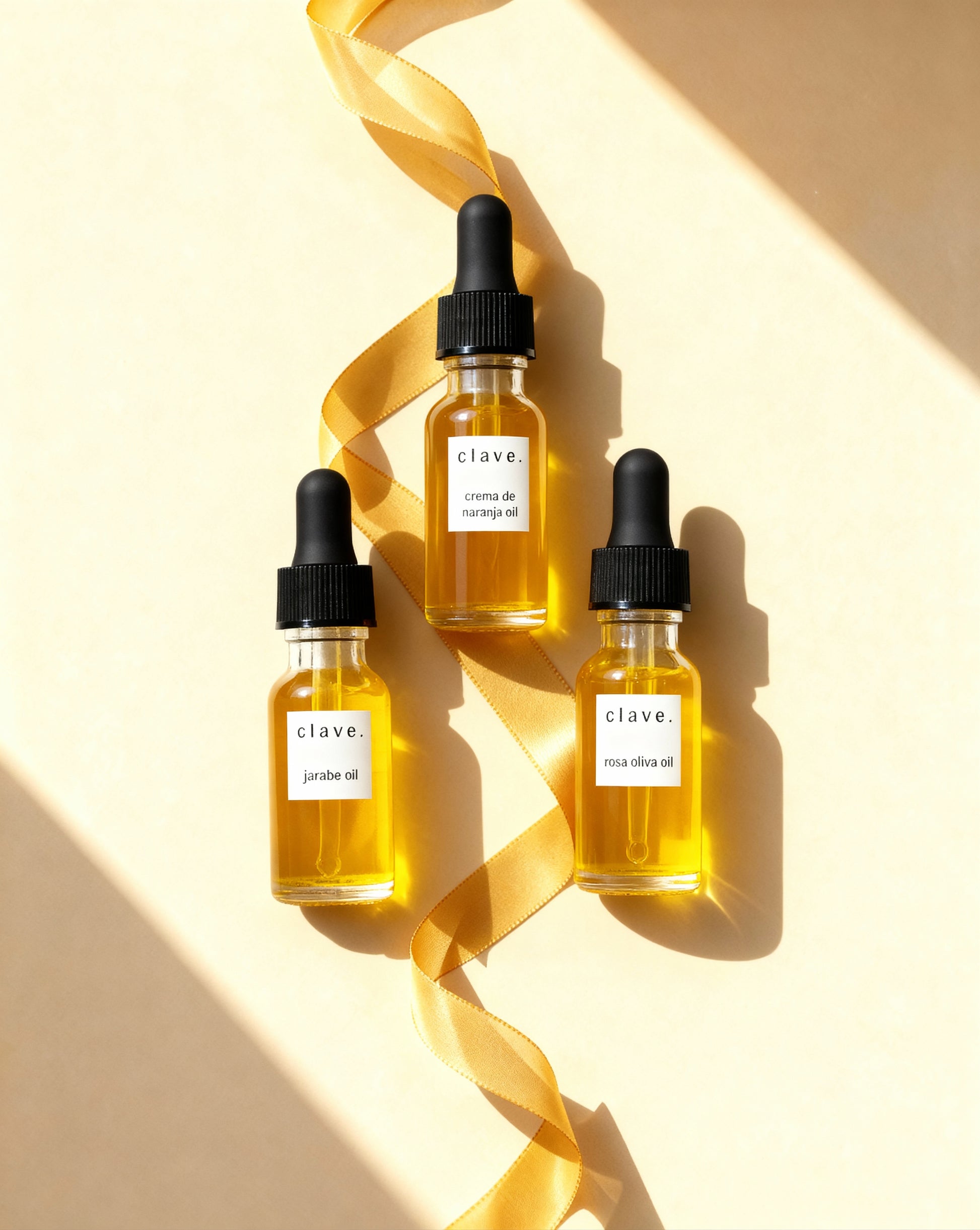 The Starter Set includes three 0.5 oz bottles of our hand-crafted face oils: jarabe, crema de naranja, and rosa oliva. Each formula offers a distinct texture, scent, and skin benefit - allowing you to explore what works best for your routine or the season.